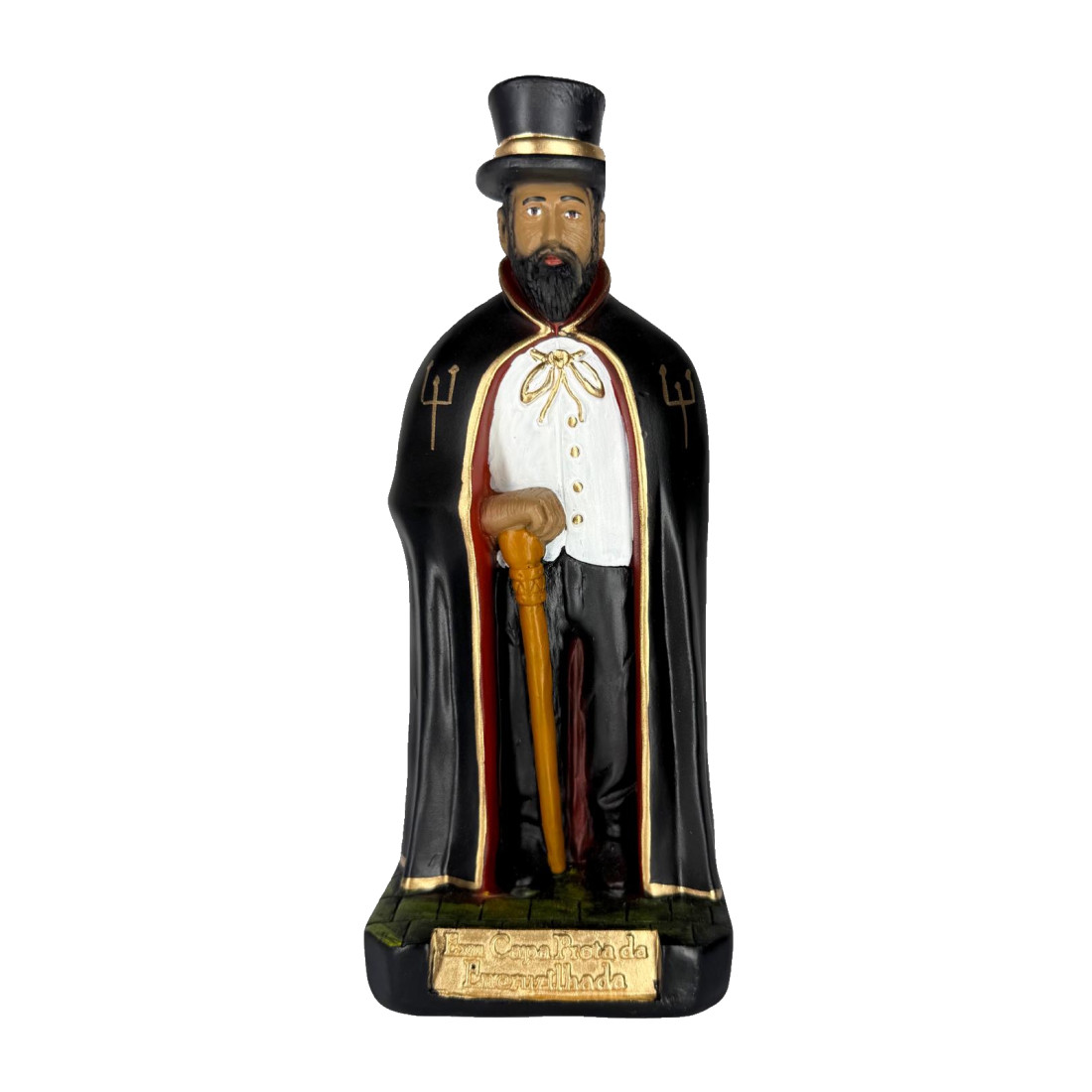 Esta imagem brasileira faz parte da colecção de imagens afro-brasileiras da conceituada fábrica Imagens Bahia. Esta imagem da Exú Capa Preta da Encruzilhada em gesso pertence a classe 20cm. As cores e as dimensões reais das imagens podem ser diferentes da perspectiva e da proporcionalidade apresentadas pelas definições do seu ecrã e pela nossa edição de fotografia.